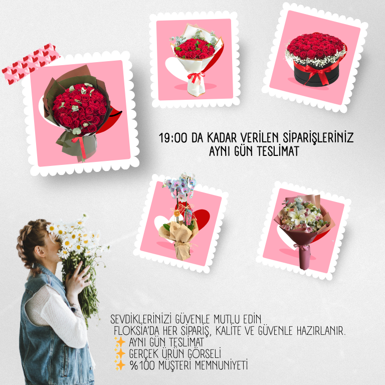 Sevgi ve dostluk bağlarınızı güçlendirmek için online çiçek gönderme hizmetimizden yararlanın. Floksia, her anı özel kılmak için buradadır. Siz de hemen web sitemizi ziyaret edin, sevdiklerinize Floksia’nın özel çiçekleriyle sürpriz yapın ve onların yüzünde bir gülümseme yaratın.