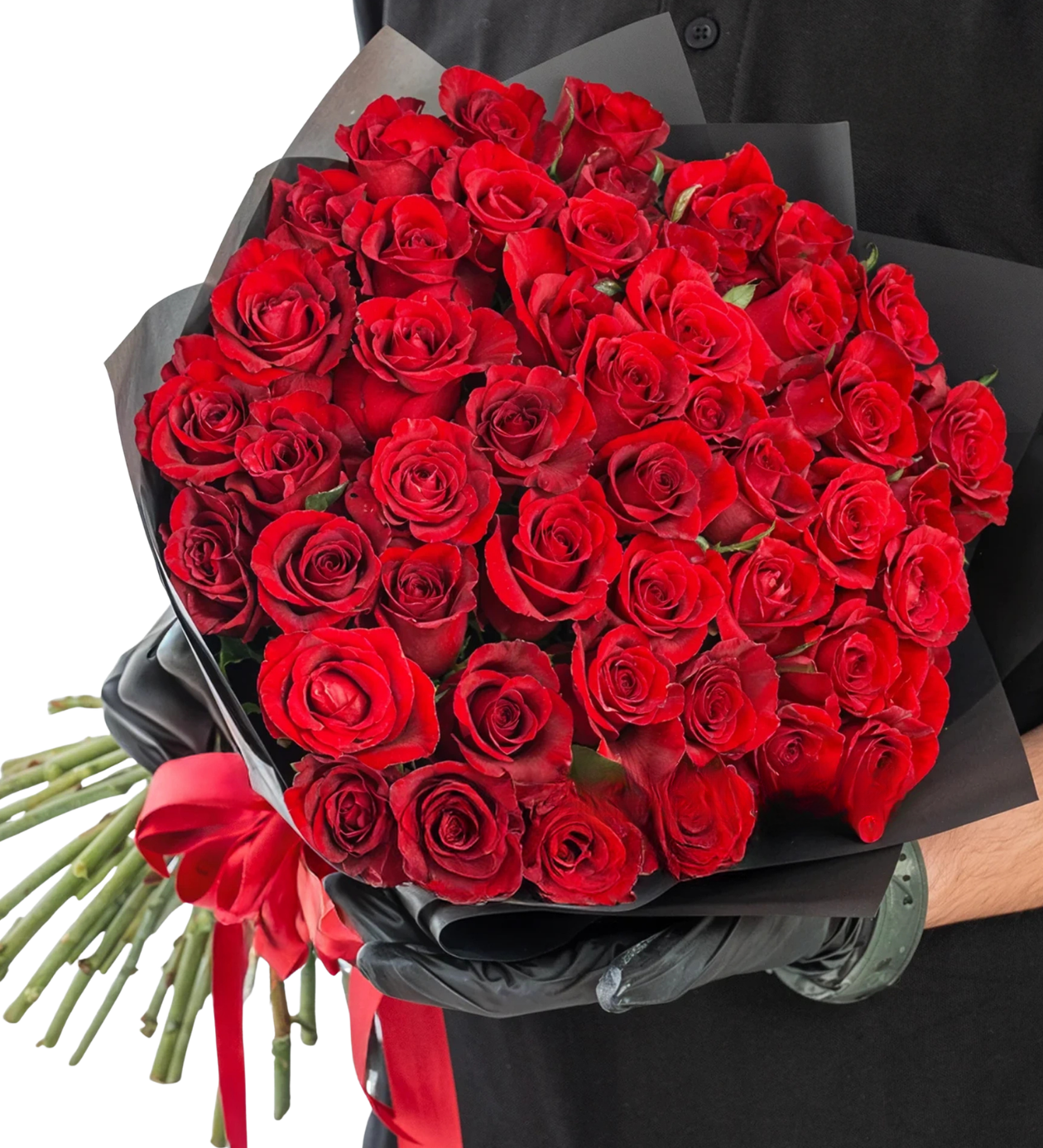 Siyah Kağıtta 41 Kırmızı Gül Buketi – Floksia Flowers