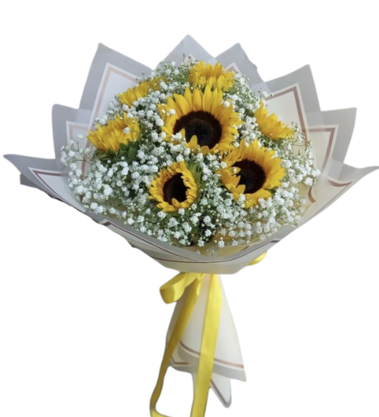 Ayçiçekleri, güneşin ışıltısını ve doğanın canlılığını simgelerken, buketin zarif yapısıyla birleşerek herkesi etkisi altına alır. Bu eşsiz buket, sevdiklerinize pozitif enerji dolu anlar yaşatmak ve onların günlerini aydınlatmak için mükemmel bir seçenektir.