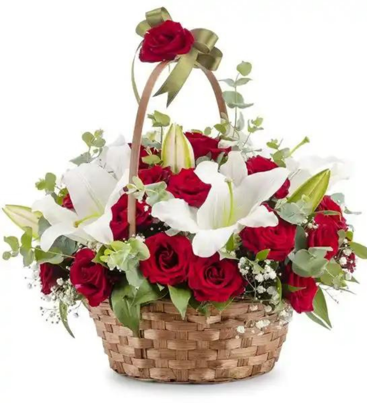Hasır Sepette Lilyum ve Kırmızı Gül Aşkı, Floksia'nın doğal zarafeti ve romantik duyguları bir araya getiren özel aranjmanlarından biridir. Bu etkileyici düzenlemede, asil beyaz lilyumlar ve tutkulu kırmızı güllerin uyumu, el işçiliğiyle hazırlanmış rustik bir hasır sepetin içinde sunuluyor. Her bir detayda, sadelik ve şıklığın kusursuz birleşimi kendini gösteriyor.