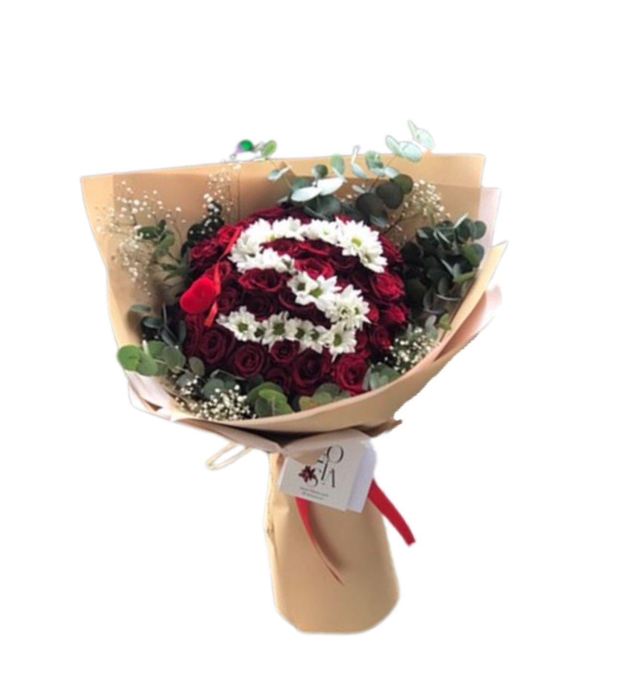 Her harf bir anlam, her gül bir duygu… Floksia Flowers’ın özel tasarımıyla hayat bulan bu buket, 41 adet kırmızı gülün büyüsünü kişiselleştirilebilir baş harf detayıyla bir araya getiriyor. Sevdiğinizin adının baş harfi, taptaze güllerin arasında öne çıkarılarak, ona özel ve unutulmaz bir armağan haline geliyor.