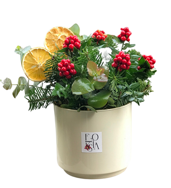 New Year Joy, Floksia Flowers’ın yeni yıl ruhuna özel olarak hazırladığı şık ve modern yılbaşı tasarımlarından biridir. 6 dal canlı kokina, 2 dal portakal kurusu ve özel tasarım plastik vazo ile hazırlanan bu aranjman; doğal renklerin sıcaklığı, yılbaşı sembolleri ve Floksia’nın zarif dokunuşlarıyla birleşerek göz alıcı bir bütünlük oluşturur.