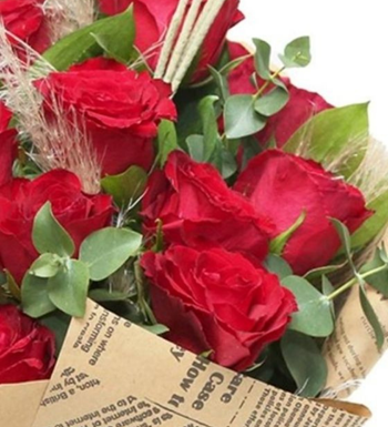"Floksia Flowers Shop İmzasıyla: Gazete Desenli Kırmızı Gül Buketi"